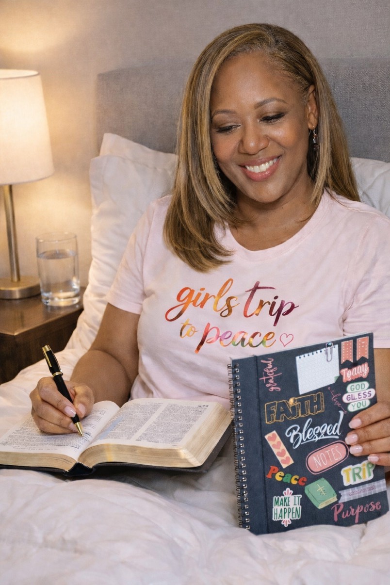 Girls Trip to Peace™ the Christian Membership Experience which helps you journal and bible study in English through life, love and biz struggles so you can live in God's peace.